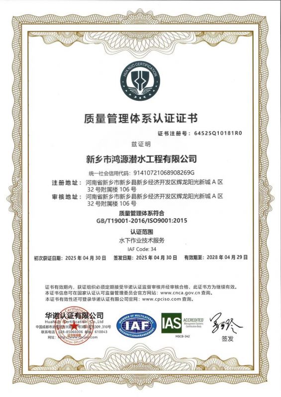 新鄉(xiāng)市鴻源潛水工程有限公司,有從事潛水行業(yè)二十多年的潛水團(tuán)隊(duì)。公司具有獨(dú)立法人資格,注冊資金600萬元。   公司的潛水人員、潛水檢測人員、潛水焊接人員均經(jīng)過正規(guī)培訓(xùn),全部持有國內(nèi)權(quán)威機(jī)構(gòu)頒發(fā)的資質(zhì)證書。我公司水下焊接可靠,質(zhì)量優(yōu)良,技術(shù)過硬,可水下焊接鋼管樁,水下焊接犧牲陽極鋅塊,水下焊接連接梁,水下封堵焊接等等施工,報(bào)價(jià)合理,拒絕暴利,竭誠為您服務(wù)!水下電焊工程,水下電焊報(bào)價(jià)合理水廠電廠的水池、水道清淤、泵房清理、管道鋪放、攔污柵清污、更換閘門起落、導(dǎo)流洞、水庫壩體等維修施工水下補(bǔ)強(qiáng)加固:對水利電力系統(tǒng)水庫、大壩及沿海內(nèi)河港口、碼頭等水工建筑物水下鋼結(jié)構(gòu)或混凝土結(jié)構(gòu)缺陷進(jìn)行。無論是對現(xiàn)在或?qū)恚紝⑹且豁?xiàng)非常有意義的工作。水下焊接將成為水下作業(yè),水下安裝,水下維修等水下作業(yè)工程中不可或缺的重要工藝手段.公司堅(jiān)持“先進(jìn)的技術(shù)設(shè)備.優(yōu)質(zhì)的服務(wù)質(zhì)量.服務(wù)效率.熱情的服務(wù)態(tài)度,為生產(chǎn)經(jīng)營理念,以拒絕暴利合理收費(fèi)為原則立足全國市場。我們將以優(yōu)質(zhì)的產(chǎn)品與售后服務(wù)來打造用戶良好體驗(yàn)。愿同新老客戶竭誠合作、互惠互利、共創(chuàng)輝煌!水下電焊工程,水下電焊報(bào)價(jià)合理,鋼圍堰清淤公司鴻源-水下電焊工程,水下電焊報(bào)價(jià)合理,鋼圍堰清淤公司,水下電焊工程。      新鄉(xiāng)市鴻源潛水工程有限公司我公司成功打造鴻源優(yōu)質(zhì)服務(wù)。公司的潛水人員、潛水檢測人員、潛水焊接人員均經(jīng)過正規(guī)培訓(xùn),全部持有國內(nèi)權(quán)威機(jī)構(gòu)頒發(fā)的資質(zhì)證書。經(jīng)過多年經(jīng)營,公司具備公司具有獨(dú)立法人資格。